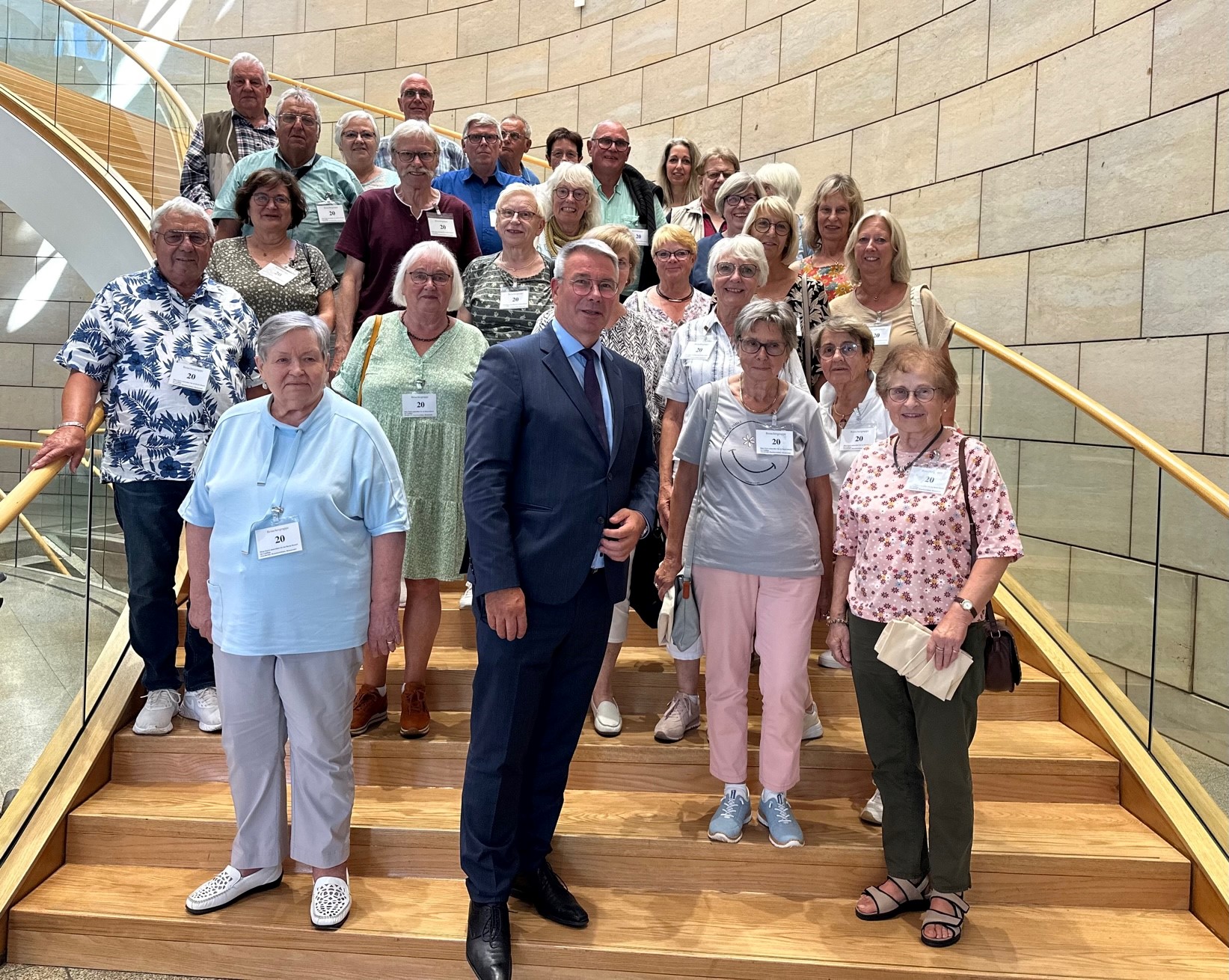 „Sie kommen zum historisch richtigen Zeitpunkt“, begrüßte der SPD-Landtagsabgeordnete Christian Dahm seine Besuchergruppe aus dem Kreis Herford. Der heimische Abgeordnete hatte eine Gruppe mit interessierten Bürgerinnen und Bürgern, mit Mitgliedern des VdK, mit ver.di Seniorinnen und Senioren und mit einer Frauengruppe aus Spenge in den Landtag nach Düsseldorf eingeladen.