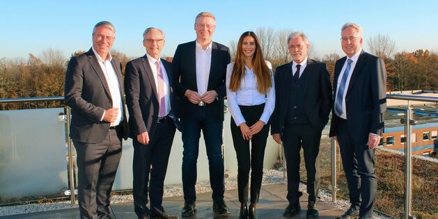 Christian Dahm, Jürgen Müller und Andreas Hüffmann besichtigen die Hiddenhauser Firma BUDICH